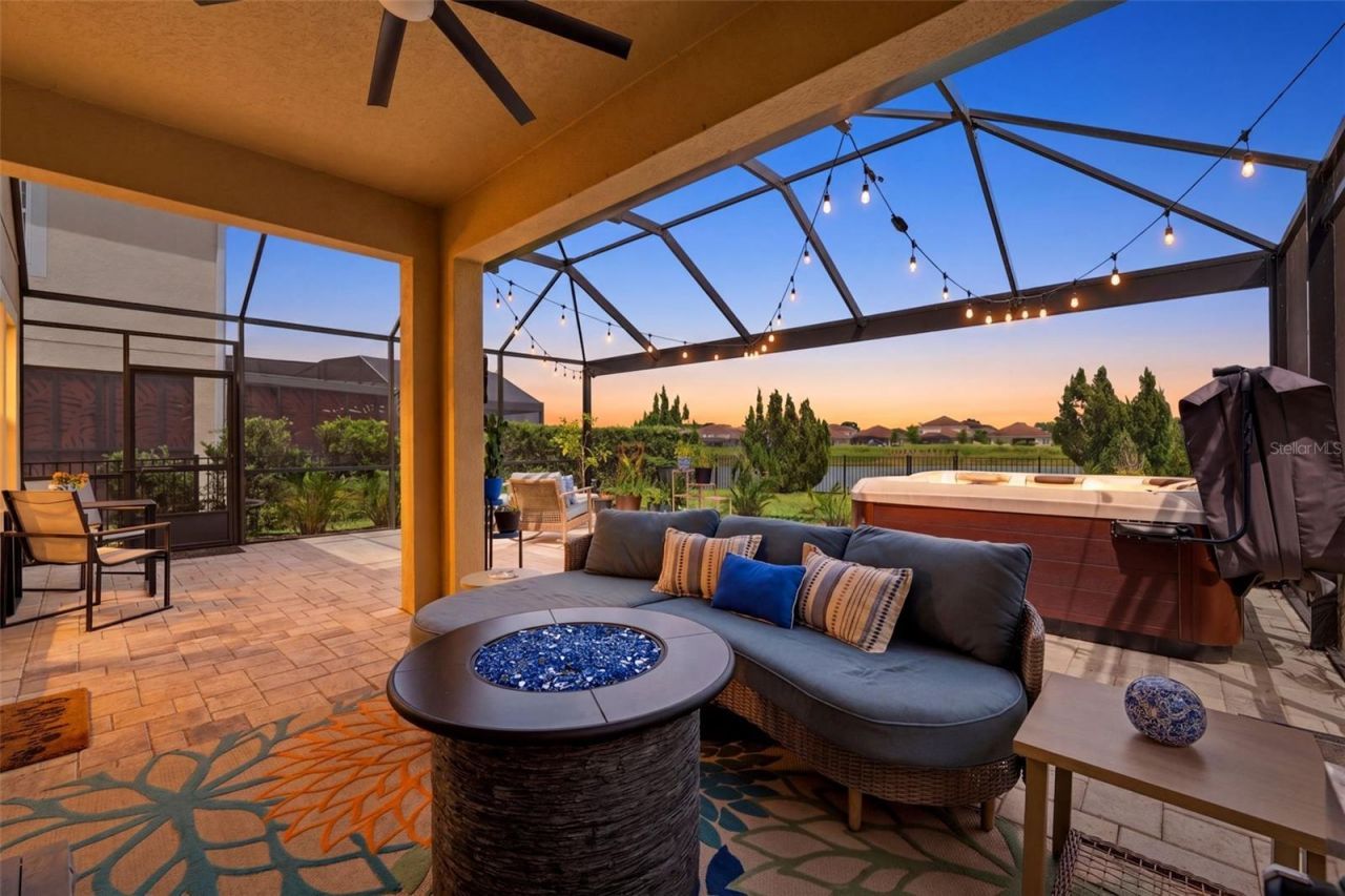 This isn't just a home in a golf community... it's life positioned around it. This is where your day starts differently...The water is still, the fountain moves gently, and the golf course stretches out beyond it. Wide open and constantly changing. You'll catch birds skimming the surface and small moments that make everything feel alive without ever interrupting the calm. And by evening? The sky shifts, the air cools, and everything slows down in a way that's hard to find... and even harder to leave.Inside, is the kind of open living everyone says they want... but rarely find done this well. A true open-concept design where the entire downstairs connects... kitchen, dining, and living without walls breaking it up. Light pours in, the layout flows effortlessly, and the backdrop is always right there. It's the kind of space where everything happens together. Conversations carry, the game's on, people gather without feeling crowded... and no matter where you are, you're part of it.At the center... a statement kitchen built for real life. An oversized island that becomes the hub of the home, designer lighting that actually catches your eye, a pantry that keeps everything tucked away... and sightlines that keep the water and greens in view.Out back the oversized screened-in patio is where you'll live. Hot tub. Fire pit. TV. And nothing between you and the view... just water in front of you and the course beyond. The space was designed to remove visual barriers... so whether you're soaking in the hot tub or hosting friends, everything feels open and uninterrupted. Game days, quiet nights, friends over, or just you unwinding after a long day. It delivers every single time. And because the sunset sits at the front of the home, your evenings stay cooler, longer... making outdoor living not just possible, but effortless.Upstairs, a loft that flexes however you need it... movie nights, workspace, game room, and a laundry room exactly where it should be. The primary suite? Oversized. Private. A true reset at the end of the day. Soaking tub, walk-in shower, massive closet. Everything you want, without compromise.And just when you think it couldn't be more dialed in the practical upgrades show up too. This is a smart home, intentionally designed for modern living and everyday ease. Everyday details have been thoughtfully improved. A whole-home water softener system (2021), gutters added for long-term protection (2021), and a fully fenced yard (2021) that enhances both privacy and usability. The garage continues that same forward-thinking approach... with a 240V EV charging outlet installed in 2023, making life seamless and future-ready. Step outside and it only expands the experience. The screened, pavered patio was fully enhanced in 2023, a hot tub was added the same year, and a 120V outlet was installed in 2025 to support outdoor living at its best. The community takes it even further. Guard-gated. Immaculate. Resort-style pools, lazy river, waterslides, fitness center, sauna and golf access included in your association fees. All of it just minutes from Disney, dining, and everything Central Florida has to offer. From here, you can see Disney fireworks lighting up the sky. On clear nights, you can even catch rocket launches from NASA in the distance.This isn't just another home on the market, it's the one people walk into and immediately start planning their life around. See... Fall in Love... Make it your own!!
